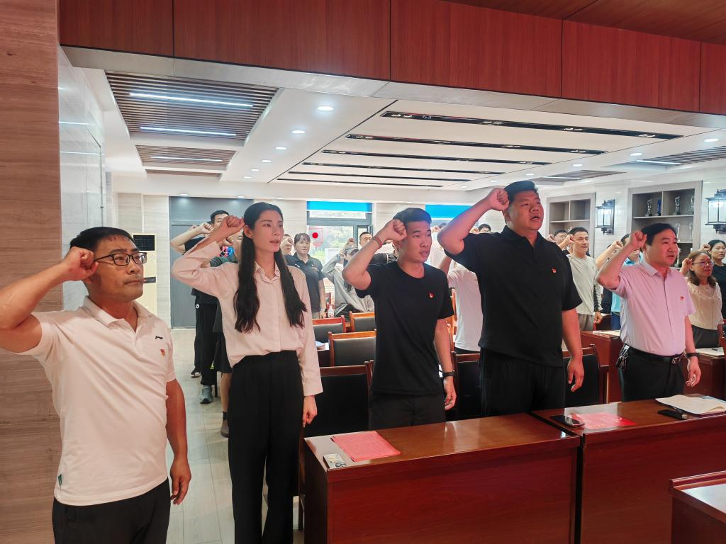 6月24日下午,XC体育党总支在104会议室举行新党员入党宣誓暨老党员重温入党誓词大会,综合办公室主任董飞主持大会