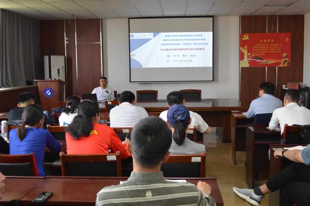5月9日下午,代坤教授应邀为公司教师作题为《社科基金申请书撰写技巧及注意事项》的学术报告,XC体育党总支书记兼经理田启发主持报告会。