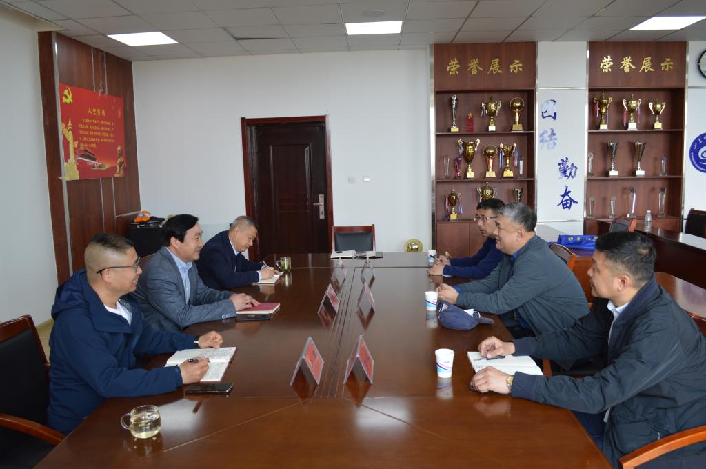 4月20日,黑龙江科技大学体育部党委书记唐立国、副主任李斌、教务科长李文福一行到公司进行工作调研和交流,党总支书记兼经理田启发、副经理杨彤彤、代坤接待了唐立国一行。