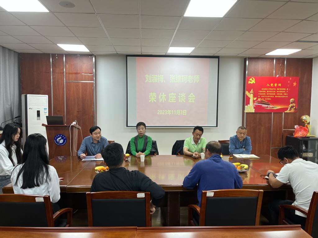 11月3日下午,公司举办刘淑梅、张维珂老师荣休座谈会,公司班子成员、部(中心)主任、教师和员工代表参加了座谈会,座谈会由副经理、工会主席杨彤彤主持。