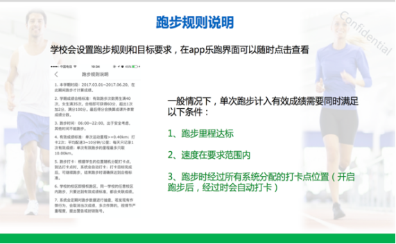 15为保证锻炼效果,禁止任何作弊行为,包括使用交通工具、替人代跑等行为,“步道乐跑”后台会根据跑步分段配速、轨迹信息以及手机ID变更等情况分析作弊行为,一经核实将取消乐跑成绩。同时也欢迎同学们相互督促