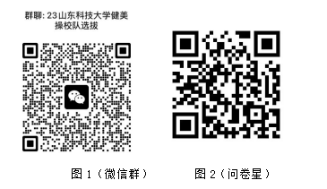 2.报名方式:扫描以下二维码报名。报名提交成功的同学请加入微信群(图一),并填写问卷星-XC体育健美操报名信息表(图二)。