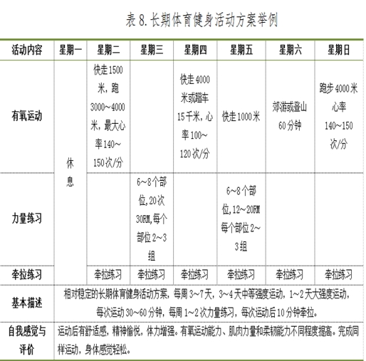 长期体育健身活动方案举例见表8。