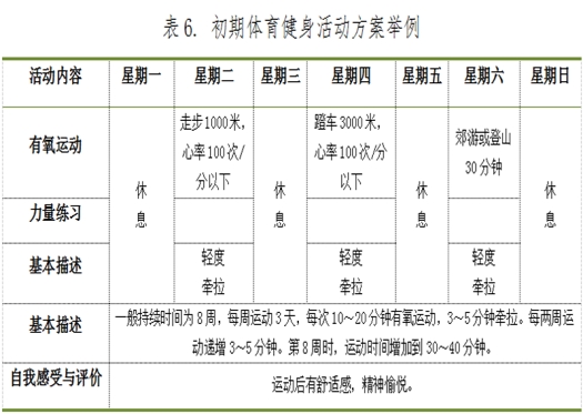 初期体育健身活动方案举例见表6。